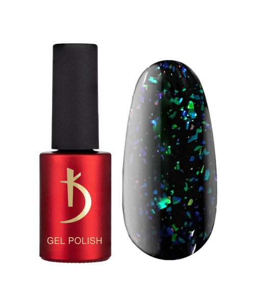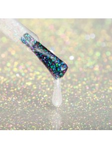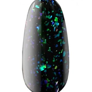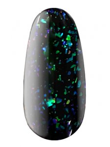 Gel polish No. 1RF: a transparent base with a predominance of shimmering flakes of blue and green shades. The incredibly beautiful iridescence of this gel polish reminds us of the power of natural wonders, as well as their patrons – forest nymphs.